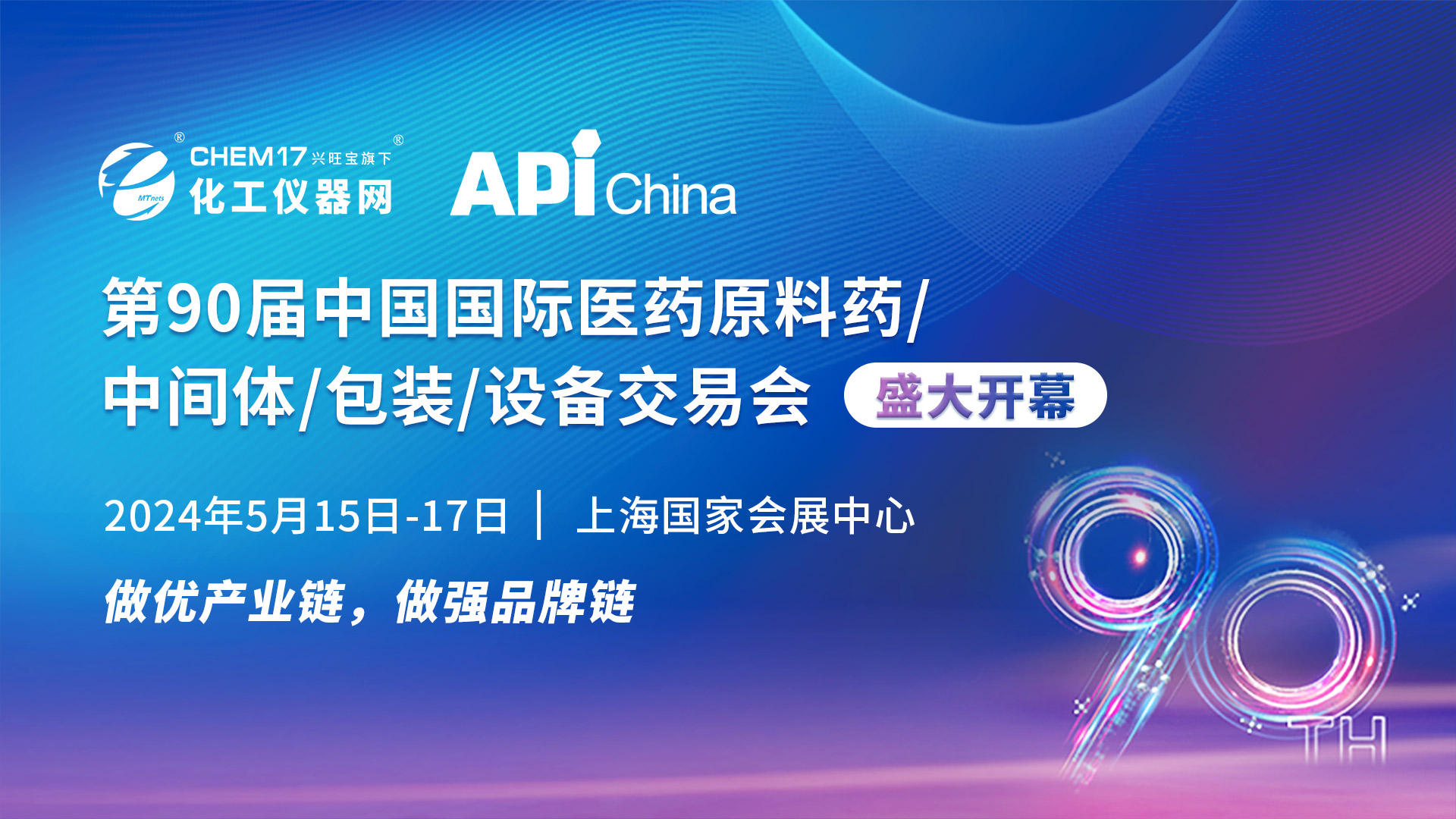 第90届中国国际医药原料药/中间体/包装/设备交易会(API China)、第88届全国药品交易会(PHARMCHINA)、2024中国国际健康营养博览会(NHNE)将于2024年5月15-17日,在上海国家会展中心举办。本次展会将吸引来自海内外医药及健康营养产业近4000家企业参展,举办会议活动100余场,参会观众有望突破15万人次。